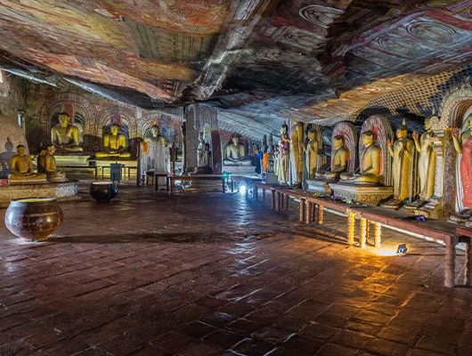 Dambulla's Golden Temple complex features a series of well-preserved cave shrines, offering a spiritual and cultural glimpse into Sri Lanka’s Buddhist history.
